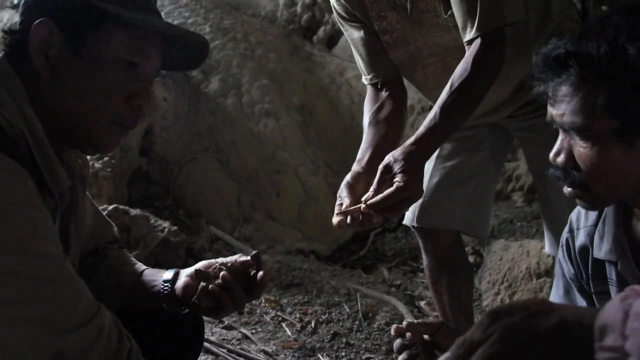 This video was part of a larger project where a joint team of anthropologists and archaeologists traveled to Flores in Indonesia to research ethnographic accounts of another kind of hominid (potentially Homo floresiensis, or The Hobbit) living in caves into historic times.