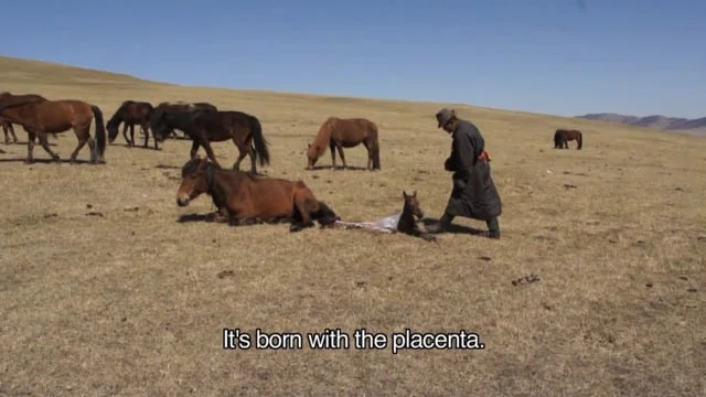 Khangai Herds is an observational film made by Dr Natasha Fijn about the coexistence of two herding families and the herd animals living amongst them in the Khangai mountains of Mongolia. The herds consist of horses, cattle (including yak), and a combination of sheep and goats. In a land of extreme conditions, both herder and herd animal depend upon one another as a means of survival. Within broad river valleys, beneath steep slopes with patches of forest, herd animals are free to roam, existing within their own complex social structure and hierarchy. Herders successfully integrate themselves within this herd social structure by taking the role of lead animal within the herd, socially engaging and communicating daily in constant cross-species, cross-cultural, human-other animal dialogue. This is achieved through herders and herd animals growing up amongst one another from birth and throughout important stages in one another’s lives.
